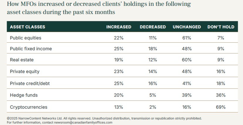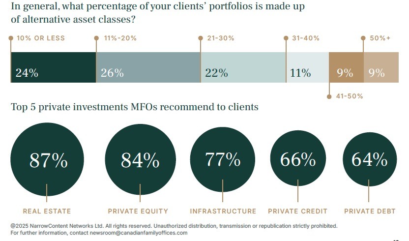 To fill at least some of the knowledge gaps about an ecosystem that is still growing and rapidly evolving, Canadian Family Offices has for the past two years conducted a survey of multi-family offices—the only one of its kind in Canada. Our recently released latest study, The Multi-Family Office Landscape in Canada 2025, is based on a survey of nearly 80 MFOs across the country, and it includes several findings that point to trends in how and where MFOs are investing, what their concerns are, and specifically their attitudes towards alternatives investments, including venture capital and private equity.